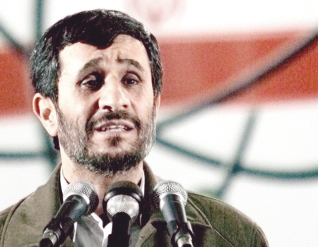 نجاد يتحدث خلال حفل اقيم في منشأة التخصيب النووي في طهران ( ا ف ب)