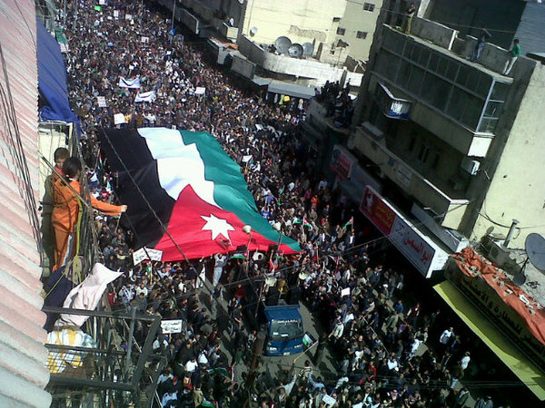 من جانب آخر نفذ مئات الاشخاص في نفس المكان اعتصاما رفعوا فيه شعارات دعت الى التمسك بالوحدة الوطنية والالتفاف حول الراية الهاشمية لأنها صمام الامن والامان في هذا الوطن ، وانتقدوا فيه كل اصحاب الاجندات الشخصية والخارجية .