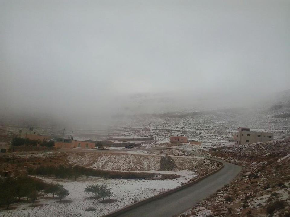 تشهد مرتفعات عديدة في المملكة تساقطا للثلوج والبرد فيما تتساقط الأمطار الغزيرة في باقي المناطق وسط هبوب رياح شديدة.