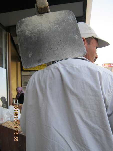 والصورة الثالثة لرجل فلاح جمع من خير الأرض أعشاب وبسط بها على الرصيف طلبا للرزق ، وهو هنا يؤمن أن رأس ماله هي الأرض الأم المعطاء التي لاتبخل عليه في يوم من الأيام ، ولايخاف من أحد لأن خير الأرض متجدد ولايمكن لأحد أن يسيطر عليه أو أن يدعي أنه له وحده