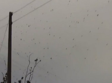 شهدت منطقة ( سانتو انتونيو لا بلاتا) في البرازيل يوم الجمعة الماضي 8-2-2013 ظاهرةً غريبة جداً، حيث غطت سماء المنطقة الغيوم لكن مع هطولٍ نوع جديد من المطر، حيث امتلأت السماء بآلاف العناكب كبيرة الحجم التي تعلّقت على شبكة عنكبوتية هائلة قامت بنسجها على أسلاك و اعمدة الهاتف، في منظر يظهر كأنه تساقط غزير للعناكب من السماء.
