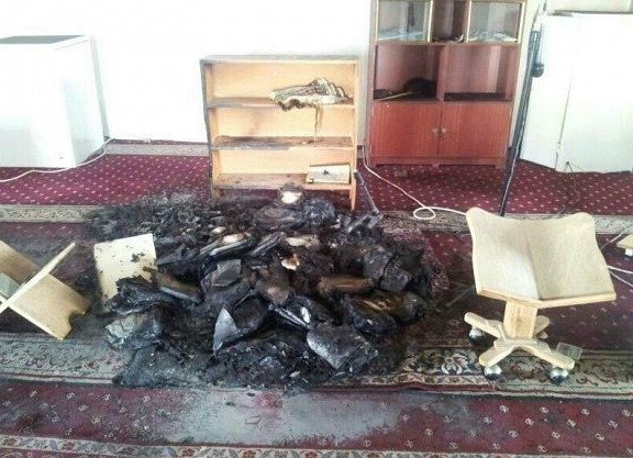 مصاحف محترقة داخل أحد المساجد
