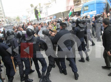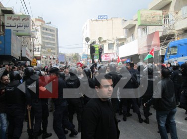 وقد شكلت قوات الأمن العام والأجهزة الأمنية فاصلا بشريا بين المسيرتين ، الا ان بعض المتظاهرين نجحوا باقتحام الحاجز ؛ الامر الذي اسفر عن مناوشات مع قوات الدرك .