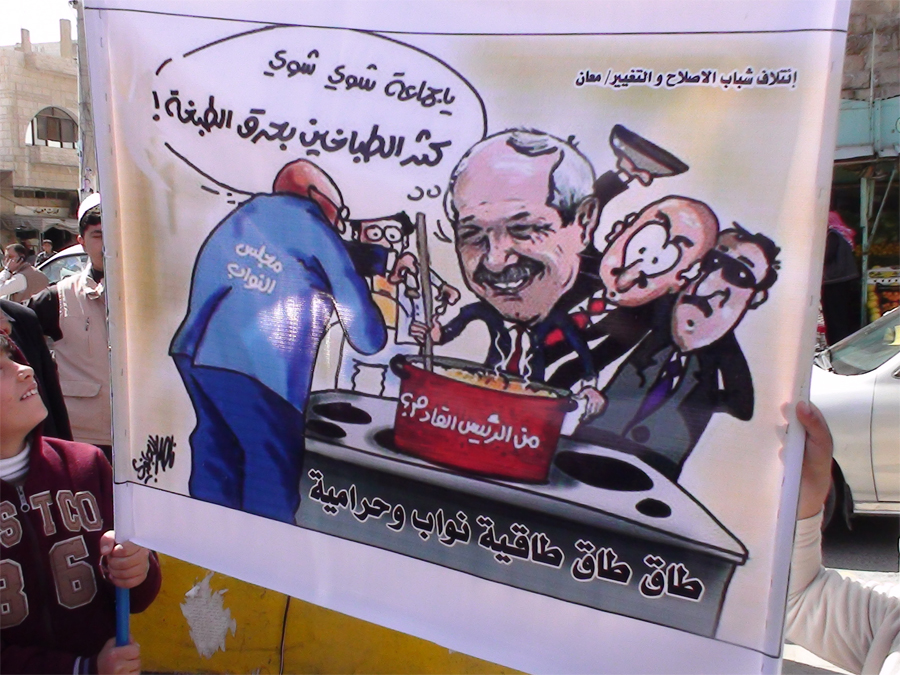 نفذ الحراك الشعبي في معان بمشاركة الفاعليات الشبابية والحزبية والنقابية وقفة أحتجاجية اليوم أمام مسجد معان الكبير تندد بالفساد وغلاء الأسعار.