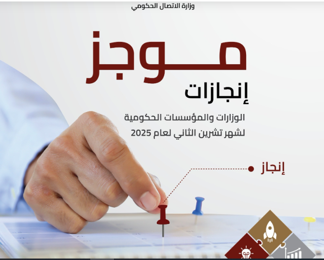 "الاتصال الحكومي" تنشر موجز إنجازات الوزارات والمؤسسات الحكومية خلال تشرين الثاني الماضي