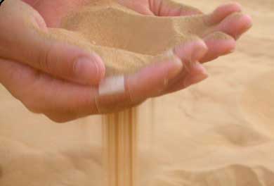 إِذَا أَمْسَكَت بِهَا بِيَد مُرْتَخِيَه و مُنْبَسِطَة سَتَظَل الْرِّمَال بَيْن يَدَيْك ...