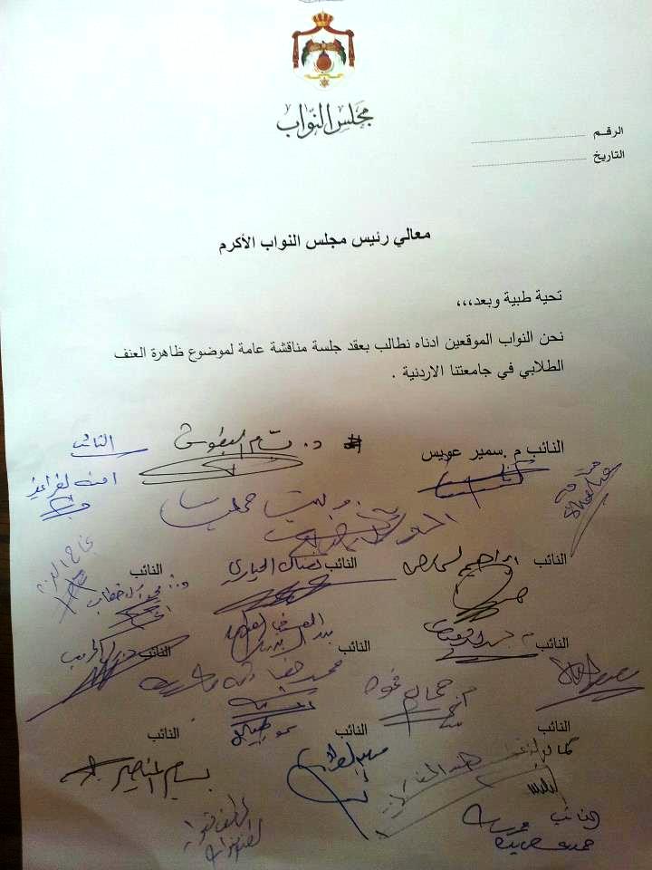 طالب نحو 20 نائباً بعقد جلسة مناقشة عامة لموضوع ظاهرة العنف الطلابي في الجامعات الاردنية