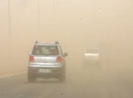 1- خطر تدني مدى الرؤية الأفقية في مناطق واسعة نتيجة الغبار، المُثار والمصاحب للرياح النشطة.