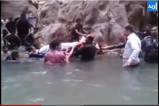أظهر مقطع فيديو عملية اخراج الرقيب في الشرطة السياحية ابراهيم الجراح الذي توفي غرقا في ماعين الثلاثاء الماضي اثناء مرافقته لوفد سياحي اسرائيلي.