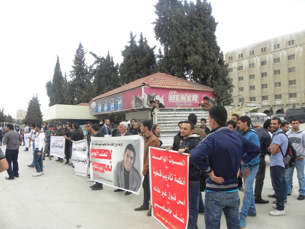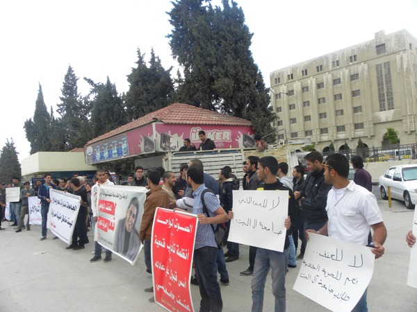 وسط حضور طلابي حاشد وبمشاركة عدد من طلاب الجامعات الاردنية، نظمت الحملة الوطنية من أجل حقوق الطلبة "ذبحتونا" ونقابة المعلمين بالتعاون مع القوى الشبابية والطلابية اعتصاماً بعد ظهر اليوم أمام البوابة الرئيسية للجامعة الأردنية رفضاً للعنف الجامعي وتأكيداً على حرية العمل الطلابي في الجامعات وإعادة النظر في كافة القوانين والأنظمة المتعلقة بهذا الملف.