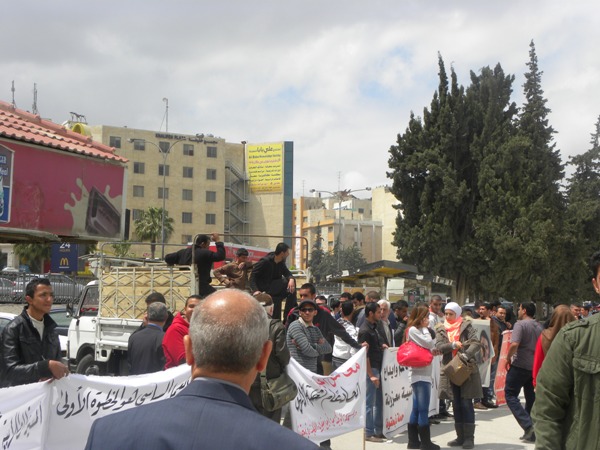 ورفع المشاركون بالاعتصام صورة الطالب أسامة الدهيسات الذي توفي قبل أيام في أحداث عنف وقعت في جامعة مؤتة، كما رفع المشاركون الشعارات التالية: