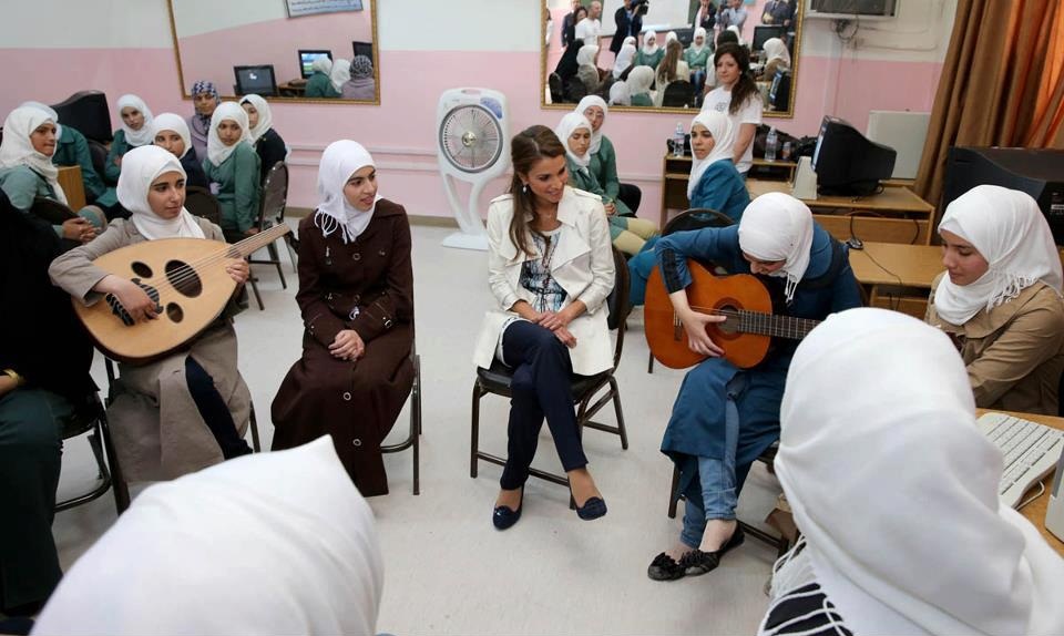 وخلال زيارة إلى مدرسة الأشرفية الأساسية للبنات، التقت جلالتها مديرة ومعلمات المدرسة بحضور مديرة مبادرة "مدرستي" دانا الدجاني وتبادلت الحديث معهن حول البنية التحتية والأنشطة اللامنهجية التي طبقت في المدرسة بعد شمولها بالمبادرة.