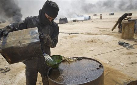وزارت "صنداي تلغراف" مصافي بدائية لتكرير النفط يستخدمها المقاتلون وتجار في المناطق السورية المحررة من النظام لاستخراج الوقود من النفط، حيث تستطيع ماكنات التكرير البدائية انتاج 30 لتر فقط من البنزين ونفس الكمية من وقود الطبخ، وأكثر بقليل من الديزل، وذلك من كل ستة براميل يتم ضخها في المصفاة.