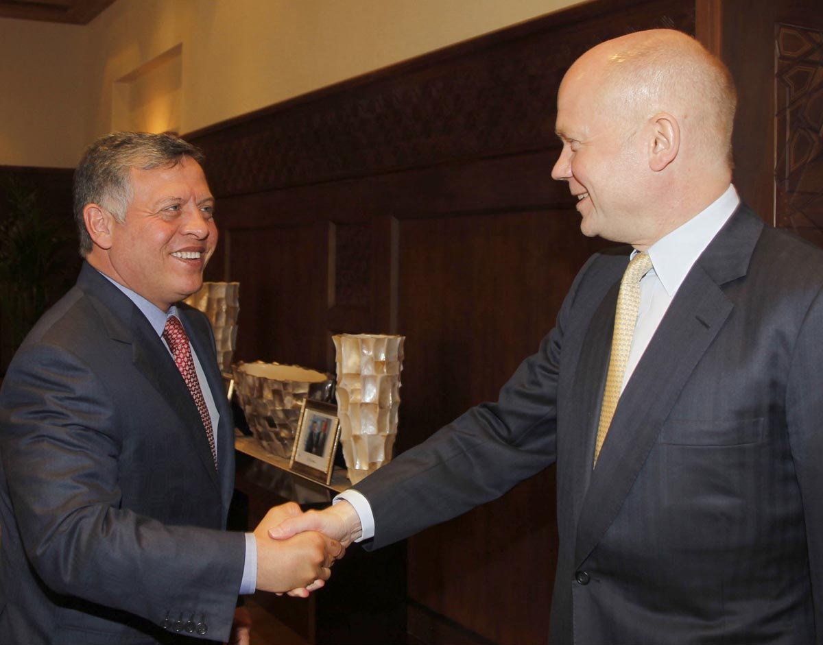 استقبل جلالة الملك عبدالله الثاني اليوم الأربعاء وزير الخارجية البريطاني وليم هيغ، في اجتماع جرى خلاله بحث العلاقات الثنائية والمستجدات الراهنة في الشرق الأوسط.