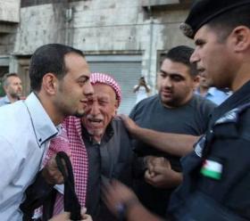 تمكنت الأجهزة الأمنية من إلقاء القبض على أشخاص قاموا بالاعتداء على أهالي الأسرى أثناء اعتصامهم أمام الديوان الملكي الهاشمي مساء أمس الأول الأحد حيث تم اقتيادهم الى المركز الأمني للتحقيق معهم ولمعرفة إن كان هناك شكوى من أهالي الاسرى ضدهم أم لا.