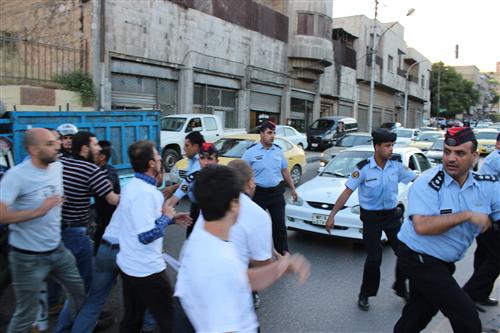 شهد اعتصام اهالي الاسرى الاردنيين في سجون الاحتلال الاسرائيلي على الدوار الرابع حالة من التوتر ومناوشات بين قوات الدرك والمعتصمين حين حاول المعتصمون الاقتراب من مبنى رئاسة الوزراء .