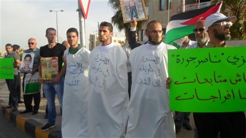وقال الناطق الاعلامي باسم اهالي الاسرى شاهين مرعي إن تنظيم المسيرة جاء بهدف لفت نظر المؤسسات المعنية بضرورة التدخل خاصة وقد مضى على اضرابهم نحو 35 يوما، الامر الذي ادى الى سوء في حالتهم الصحية.