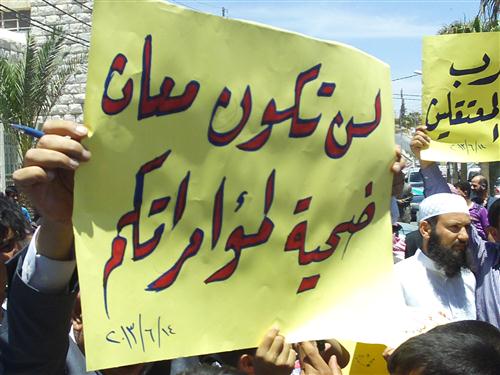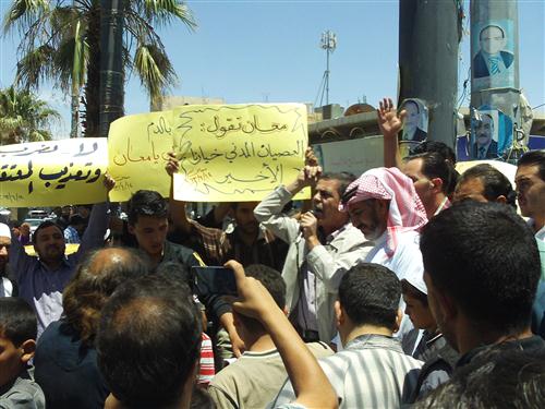 واستنكر المشاركون في الوقفة الاحتجاجية التي نظمت امام مسجد معان الكبير تعرض مدينة معان للضرب من اجل ادخال قوات امريكية، حسب وصفهم.