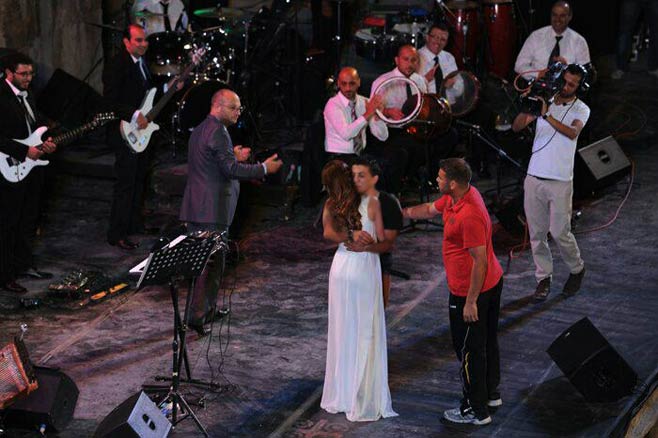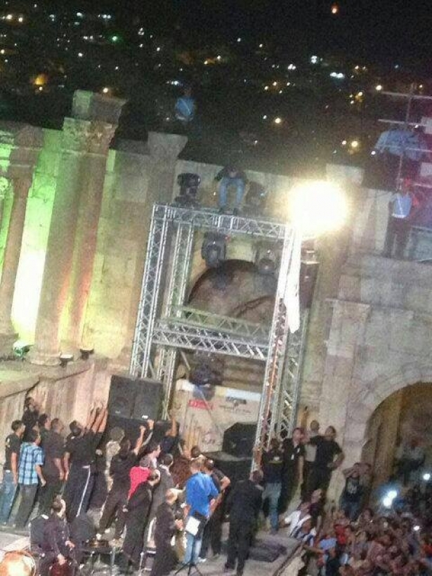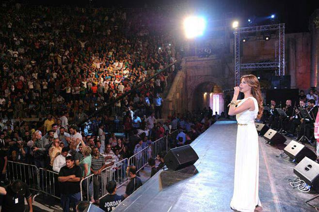 وفي تفاصيل الحادثة ، وبينما كانت الفنانة اللبنانية تلهب المسرح بصوتها ووصلاتها الغنائية ، تفاجأ الجمهور ورجال الامن بوجود شاب في اعلى الاثار من خلف الفرقة الموسيقية ،و توجه رجال الامن لانقاذ الموقف في حين ان الشاب رفض الانصياع لاوامر الامن، وبقي مكانه ووقف الجمهور مندهشا من فعل الشاب، واصر الشاب على البقاء في الاعلى ، الا انه لم يلبث طويلا و نزل وامسك به رجال الامن العام واخرجوه خارج المسرح .