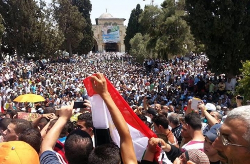 وانطلقت مسيرة ضخمة عقب صلاة الجمعة من المسجد الأقصى المبارك، تضامنا مع الرئيس الشرعي محمد مرسي ومع الشعب المصري في رفضه للانقلاب العسكري.