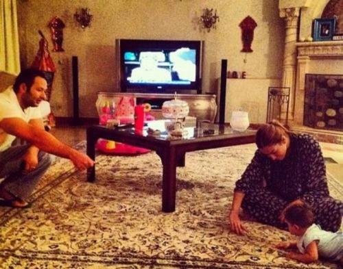 في الصورة تظهر ابنة غادة عبدالرازق روتانا وزوجها حامد الشايب والطفلة خديجة التي بدأت بالتنقل من مكان إلى آخر ويبدو أن روتانا تحاول أن تعيش مرحلة الأمومة الأولى في حياتها إلا أن معالم الطفلة غير واضحة في الصورة.