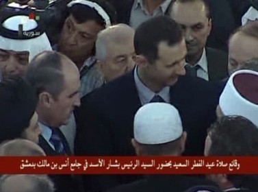 وبعد النبأ ظهر الرئيس السوري يصلي العيد في مسجد أنس بن مالك في دمشق، وفق ما أكدت وكالة الأنباء الرسمية "سانا".