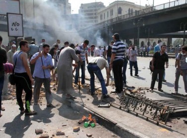 وتصاعدت اعمدة الدخان الاسود في سماء ميدان رمسيس، الذي تقع فيه محطة القطار الرئيسية بالبلاد، بعدما اشعل انصار مرسي النيران في اطارات السيارات، وذلك بحسب الشاهد ذاته.