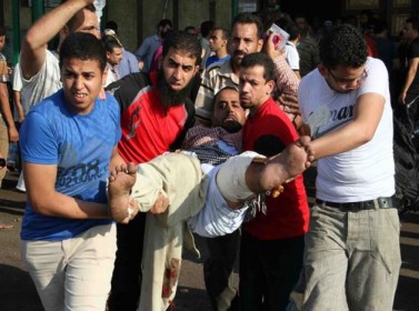 وأضاف المراسل إن نحو 41 قتيلا سقطوا في هجوم لقوات الأمن مصحوبة بأعداد من الذين يطلق عليهم البلطجية على المتظاهرين بميدان رمسيس في القاهرة، مشيرا إلى أن المستشفى الميداني في المسجد مكتظ بالقتلى والمصابين.