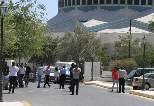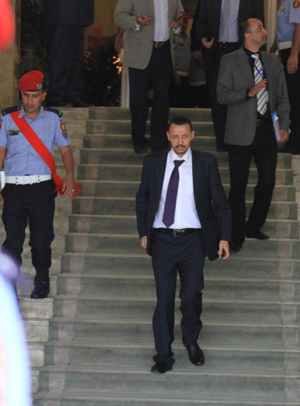 وقال مصدر أمني حينما دخل الشريف اوقفه امن الاستعلامات الخارجي وحاول تعطيله الا انه افلت بعد ان دفعهم, وتوجه مسرعا عبر قاعة التشريفات وهنا ركض نحوه عدد من افراد الشرطة بالاضافة للنواب.