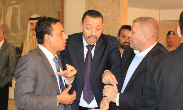 انتبه النواب الاربعة الجالسون سابقاً مع الدميسي الذي لم يًعرف مكانه خلال هذه اللحظات، وكان ذلك خلال دخول النائب مريم اللوزي التي اندفعت نحو النائب الشريف وحاولت ايقاف الشريف في زاوية وهنا كان النائب خميس عطية خلفه حيث أنه ابتعد عنه في المرة الاولى خشية التصرف بشكل غاضب عندما واجهه أثناء الدخول من البوابة الرئيسة.