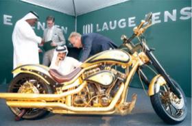 وأطلق صانع الدراجات النارية الدنماركي لاوج جينسين، وسط حضور جماهيري غفير، أمس، أول دراجة نارية مصنوعة من الذهب، خلال افتتاح أسبوع الخليج للدراجات النارية في مدرج مدينة دبي للإعلام، مؤكداً أنه لا مكان أنسب من دبي عموماً، والمهرجان خصوصاً، ليعرض فيه دراجته المصنوعة من أوراق الذهب السميكة، التي استعان في صناعتها بصائغ ذهب محترف، بحسب صحيفة 'البيان' الإماراتية.