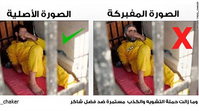 وتابع شاكر في تغريدة ثانية بنشر الصورة التي قيل إنها تعود له مع الصورة الأصلية التي يظهر التلاعب فيها، وتوجه إلى متابعيه بالدعوة إلى "الحكم" على هذا التلاعب، منتقدا مصداقية بعض وسائل الإعلام.