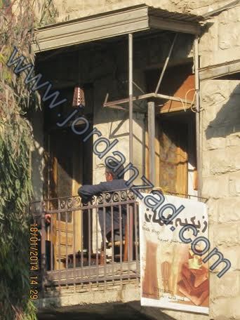 خاص - احمد عريقات - في زمن قديم ولكنه ليس ببعيد كانت البلكونه في منازل عمان شيء مشترك يعطي المدينة ومنازلها مساحة للقصص والاحاديث ، وعندما تعبر وسط المدينة " القديمة " تجد أن تلك البلكونات قد تحولت لأماكن لتجمع بقايا اثاث المكاتب وقد تهالكت زواياها واصبحت تمثل خطرا على عابري الطريق ، ولكن هناك من وجد في هذه البلاكين فرصة لإعادة التاريخ مرة أخرى لتلك المساحة من الاسمنت الخارجة من جسد المباني كي تشاهد الشمس في يوم شتوي تطلب فيه الشمس طلبا وإن كانت تلك الشمس وكما يقول البدوان " أخطر من شمس الصيف " لأنها تغدر الانسان وتشجعه على الجلوس تحتها طلبا للدفء ولايهرب منها كما في ايام الصيف ، وهذه البلكونه في شارع السلط في وسط عمان جاورتها شجرة كينا وجد هذا الرجل فيها مكان للجلوس والاعلان عن كتبه القديمة وفنجان الشاي بالميرميه .