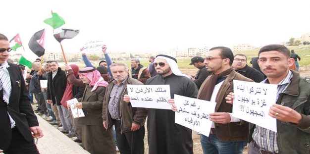 ورفع المحتجون لافتات كتب عليها “أين الحياة الكريمة التي وعدتنا بها رئيس الوزراء”، و “لا تتركوا أبناء غزة للمجهول”، و “رغم كل الظروف سنبقى الأوفياء” و “ملك الأردن لا يُظلم عنده أحد”.