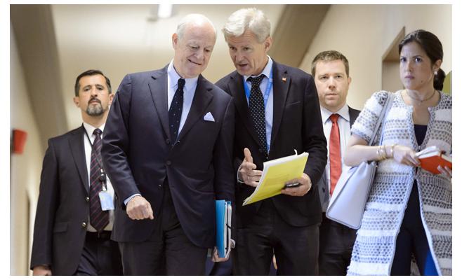وقال رئيس وفد المعارضة في جنيف عقب لقاء مع دي ميستورا في مقر الامم المتحدة إن المعارضة قبلت مبدئيا ورقة تضم 12 مبدأ عاما بشأن مستقبل سورية قدمها المبعوث الدولي للوفود في نهاية جولة محادثات سلام استمرت ثمانية أيام.
