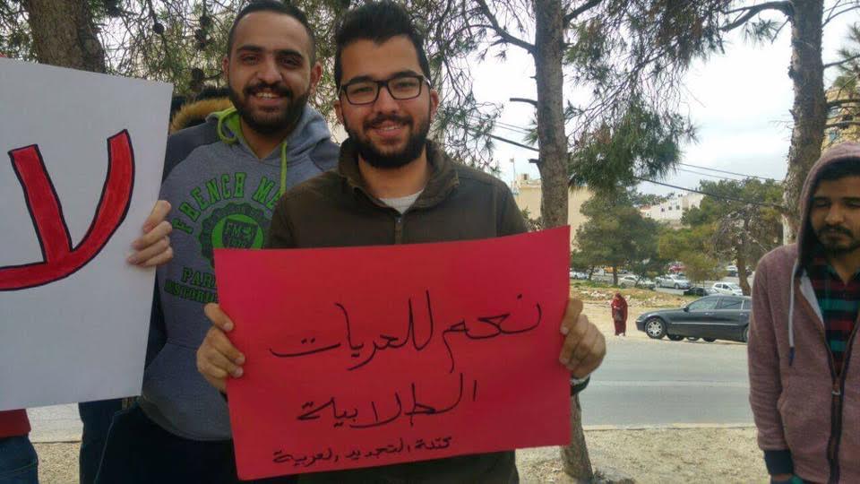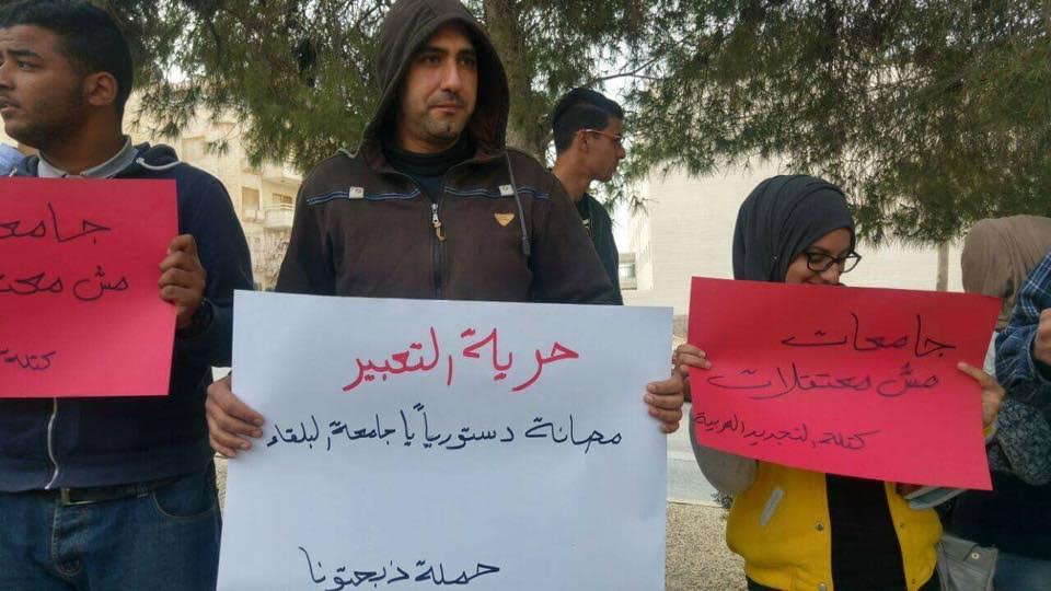 ورفع المشاركون في الاعتصام لافتات تؤكد على حق الطلبة في التعبير عن رأيهم، وترفض قمع الحريات الطلابية. وهتف المشاركون هتافات تندد بفصل الطالب الغول وتناشد وزير التعليم العالي التدخل لوقف تغول إدارات الجامعات الرسمية على الحريات الطلابية.