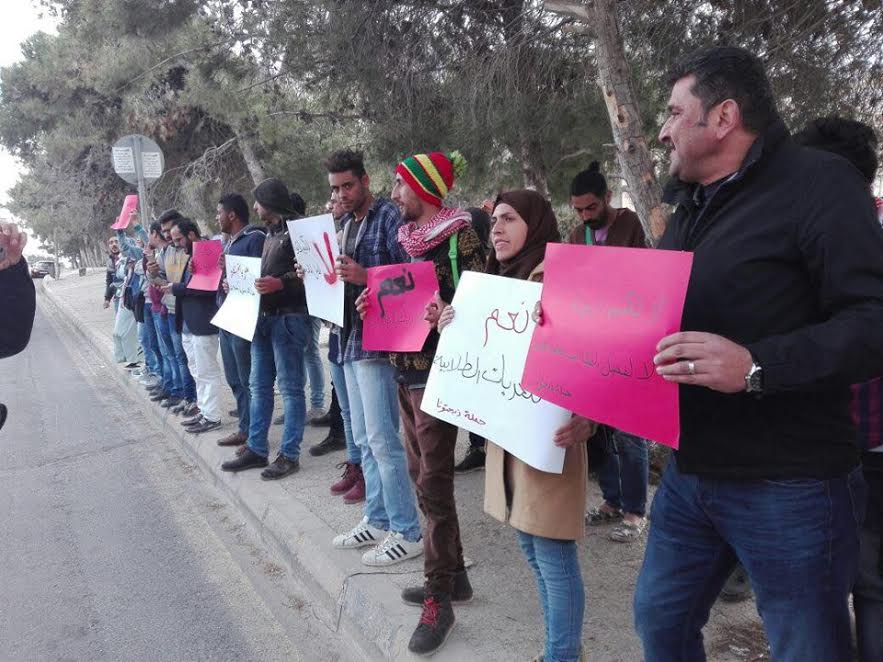 نظمت الحملة الوطنية من أجل حقوق الطلبة "ذبحتونا" وكتلة التجديد العربية الطلابية، اعتصاماً أمام وزارة التعليم العالي رفضاً للإجراءات القمعية التي تمارسها إدارة كلية الهندسة التكنولوجية "البوليتكنيك" بحق طلبتها والتي كان آخرها فصل الطالب محمد موسى الغول على خلفية وقوفه في الاعتصام الذي نظمته حملة ذبحتونا خارج الحرم الجامعي.