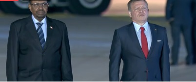 استقبل جلالة الملك عبدالله الثاني الرئيس السوداني المشير عمر حسن أحمد البشير ، بمطار الملكة علياء الدولي ، والذي يترأس وفد بلاده في القمة العربية .