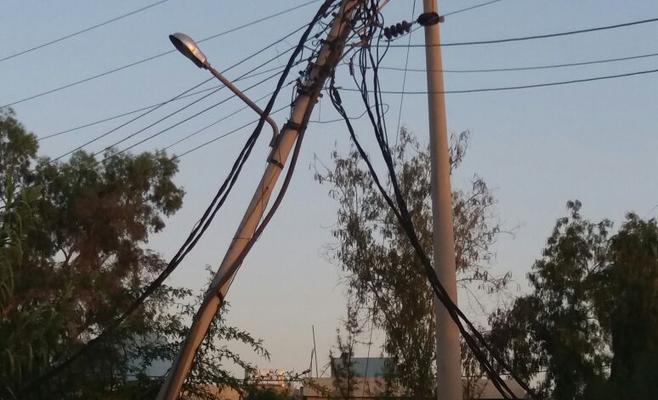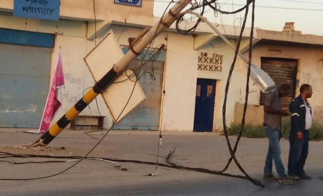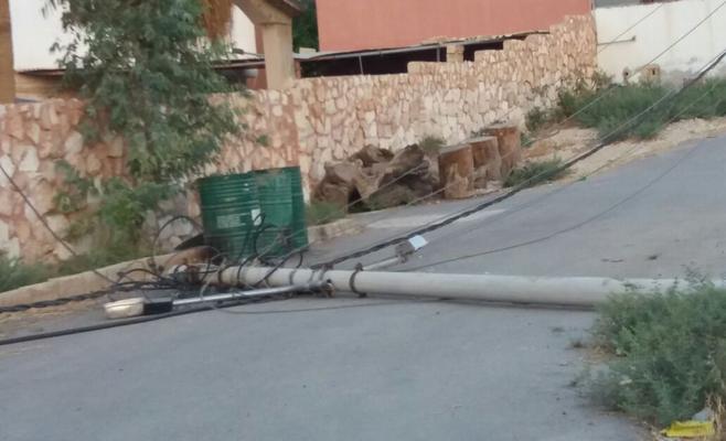 وبدأت كوادر شركة الكهرباء بالعمل على إعادة تركيب الأعمدة ليصار إلى إصلاح المحول وإعادة تركيب الشبكات.