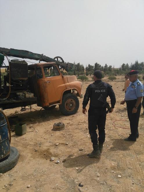 قالت وزارة المياه والري / سلطة المياه انه بناء على معلومات توفرت لمركز العمليات والسيطرة في وزارة المياه والري بالتنسيق مع مدير حوض مياه معان تفيد بوجود حفارة مخالفة في منطقة الاشعري قرب جبل التحكيم تقوم بأعمال حفر مخالف لبئر في المنطقة حيث تم التنسيق مع مدير شرطة معان العميد عمر فهاد وتم تشكيل حملة أمنية من كوادر الامن العام والدرك لمرافقة موظفي المياه ومداهمة الموقع .