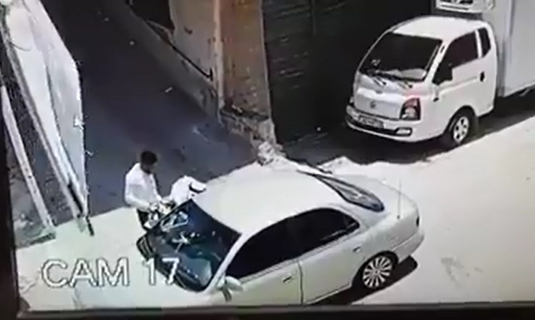 وبحسب الفيديو ، فقد لوح الشاب بيده الى الرجل المسن فيما يبدو انه بحاجة الى مساعدة ما ، ثم نزل من السيارة ، وفيما اخذ الرجل المسن يتحدث مع سائق السيارة ، غافله الشاب الاخر وقام بسرقته.