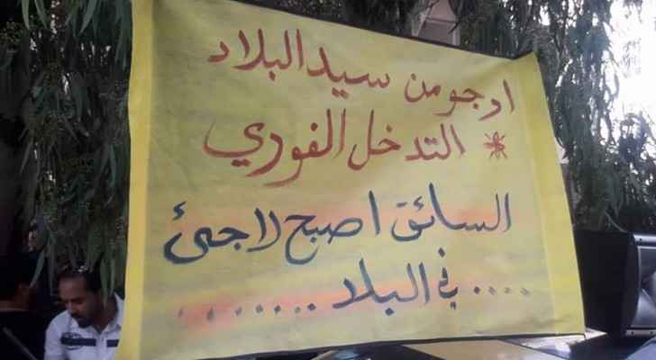 اعتصم العشرات من سائقي التكسي الأصفر أمام وزارة النقل الثلاثاء، للمطالبة بحصر عمل تطبيقات النقل الذكية على التكسي الأصفر فقط، إضافة لتعديل عداد الإنتظار، وإعادة النظر في تعرفة الأجور، وناشدوا جلالة الملك بالتدخل لإنقاذهم وأسرهم.