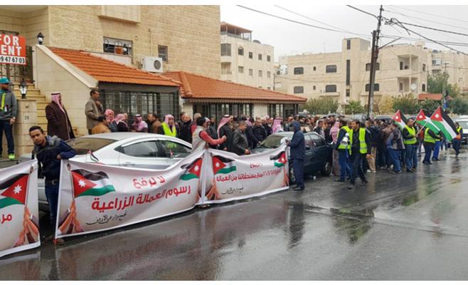 ويأتي الاعتصام كخطوة تصعيدية لإصرار وزارة العمل على "عدم إعادة رسوم العامل الوافد الى ما كانت عليه (120 دينارا)، وطلب كفالة بنكية بقيمة 5 آلاف دينار عن كل عامل"، وفق مزارعون اعتبروا ذلك "عبئا".