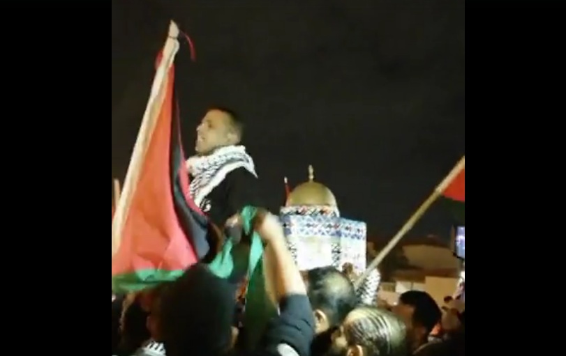 ورفع المعتصمون مجسماً لمسجد قبة الصخرة، وشعارات منها "القدس عاصمة فلسطين الأبدية.. كل القدس أقصى، وكل الأقصى فلسطين".