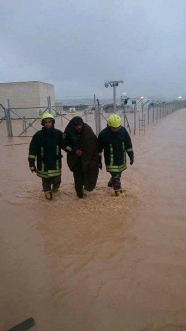 قال مدير دفاع مدني مادبا المقدم غسان خطاطبة أن فرق الإنقاذ في المديرية تعاملت اليوم الجمعة مع حالة محاصرة مياه الأمطار لحارس مشروع للطاقة الشمسية على طريق المريجمات في مادبا.