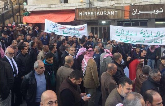 جدد مواطنون من أبناء مدينة السلط اعتصامهم في ساحة العين وسط المدينة احتجاجا على قرارات حكومة الدكتور هاني الملقي الأخيرة والمتضمنة رفع أسعار الخبز ومعظم السلع الغذائية وفرض رسوم اضافية على كثير من الخدمات..