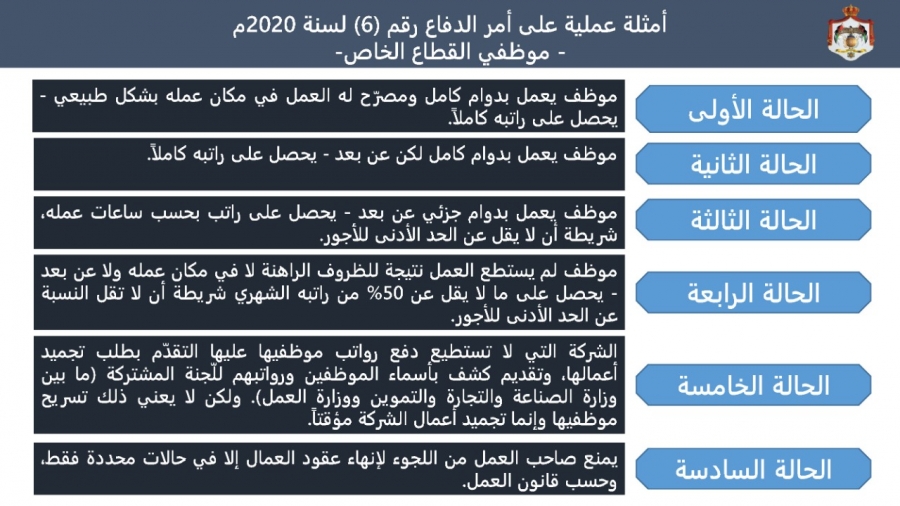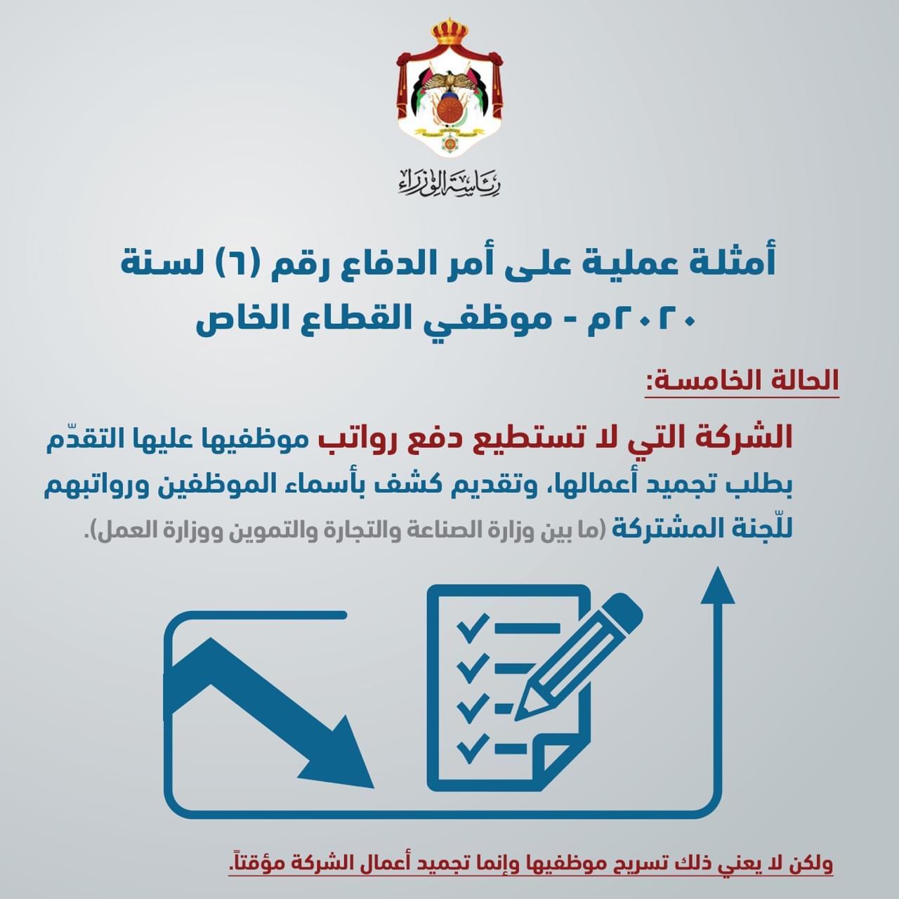 نشرت الحكومة أمثلة عملية على أمر الدفاع رقم (6) لسنة 2020م - موظفي القطاع الخاص