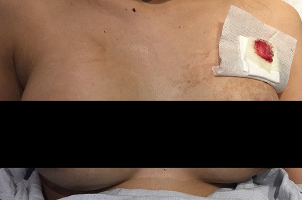 وكشف الجراج "ماكفيو" تفاصيل الحادثة حين ذهبت المريضة التي لم يذكر اسمها، إلى قسم الطوارئ في المدينة الكندية بعد الشعور بالألم في صدرها ورؤيتها دماء.
