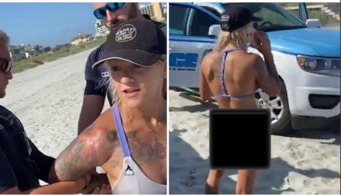 ألقت قوات الأمن الأمريكية القبض على الراقصة البهلوانية "سام باندا" لارتدائها ملابس سباحة "ثونغ" على شواطئ "ميرتل بيتش" في ولاية كارولينا الجنوبية خلال عطلة نهاية الأسبوع.