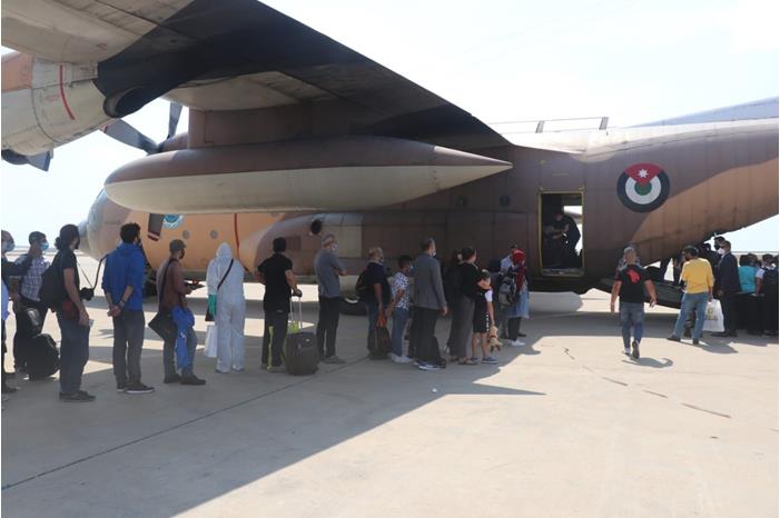 أُجلي اليوم الخميس، 37 أردنياً على متن طائرة نقل تابعة لسلاح الجو الملكي من لبنان إلى الأردن عبر مطار ماركا العسكري، وذلك ضمن الجهود التي تبذلها المملكة لتأمين عودة الأردنيين من بعض الدول، نظراً للقيود التي يفرضها انتشار فيروس كورونا المستجد على حركة الطيران بشكل عام.